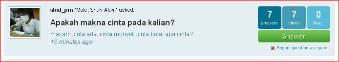 Youthsays.com is awesome. I pretty much have a rough idea what most Malaysian youths think about. The questions asked there are pretty much trivial. And repetitive. "Apa yang akan anda buat jika gf anda merajuk?", "Kenapa kena ada temuduga kerja?", "AF dan Mentor, mana lagi best" and stuffs like that.